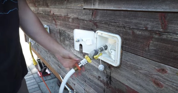 Hookups often resemble outdoor hose connections but must be done with approved piping, frost-proof fixtures where needed, and sometimes backflow prevention depending on local rules.